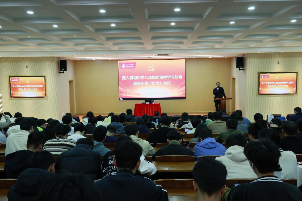 当天,学院还召开了党委理论学习中心组(扩大)集中学习会,邀请马克思主义学院副院长陈位志教授作《深入贯彻中央八项规定精神,持续加强党的作风建设》为题的辅导报告,从“习近平总书记关于加强党的作风建设的重要论述、中央八项规定及其实施细则精神、党的十八大以来深入贯彻中央八项规定精神取得的显著成效、违反中央八项规定及其实施细则精神的突出问题、以作风建设新成效推动保持党的先进性纯洁性”五个方面进行了讲解。学院党委理论学习中心组成员、师生党支部书记、党政办主任、团委书记、组织员、宣传员以及党建工作室学生骨干、入党积极分子以及入党申请人学习小组成员等190人参加会议。