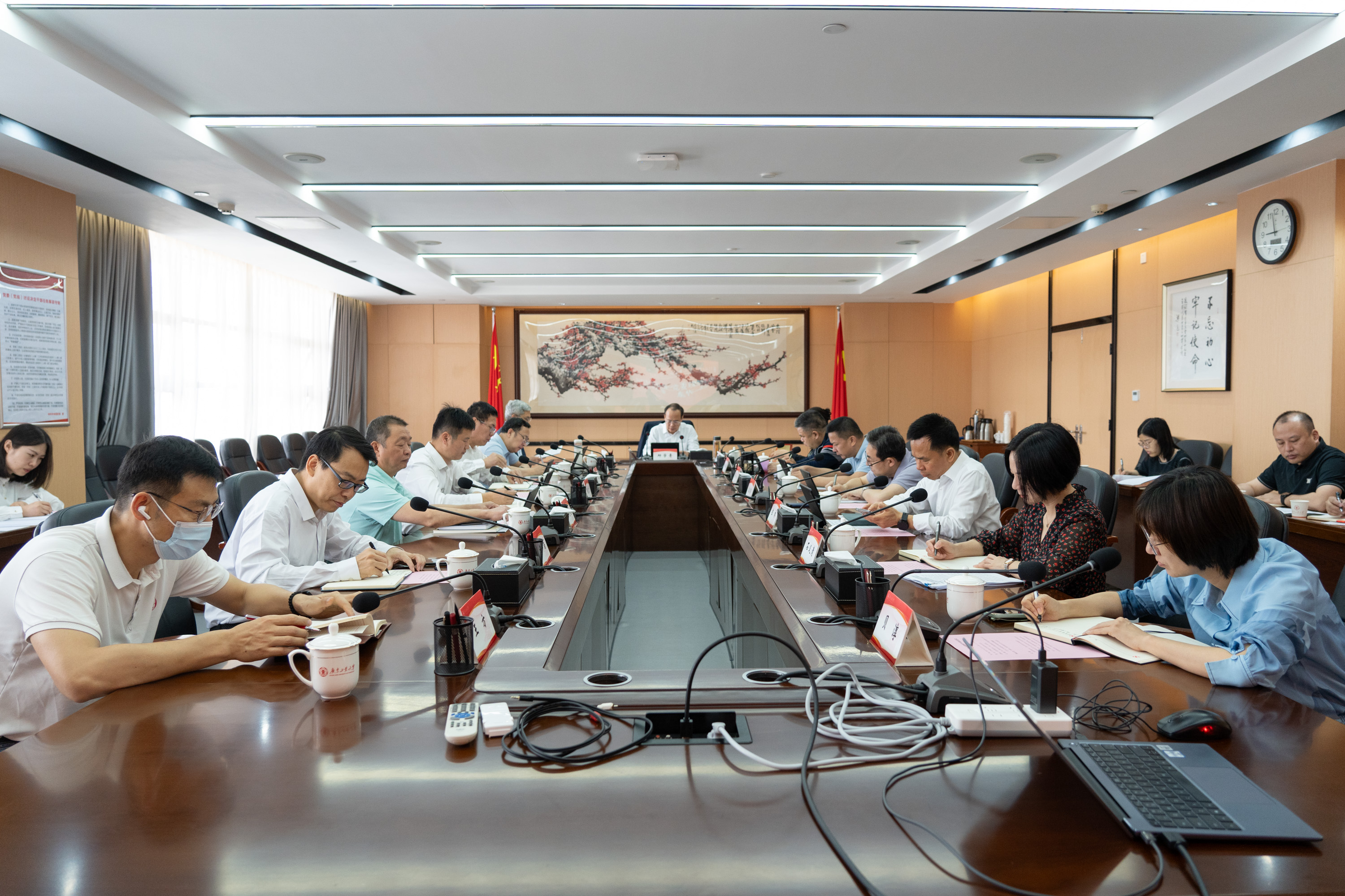 4月15日上午,华体会·官方版网站登录入口党委理论学习中心组召开深入贯彻中央八项规定精神学习教育集体学习研讨会,专题学习《习近平关于加强党的作风建设论述摘编》。校党委副书记、校长邱学青主持会议并领学,校领导、校党委理论学习中心组成员参加学习会。