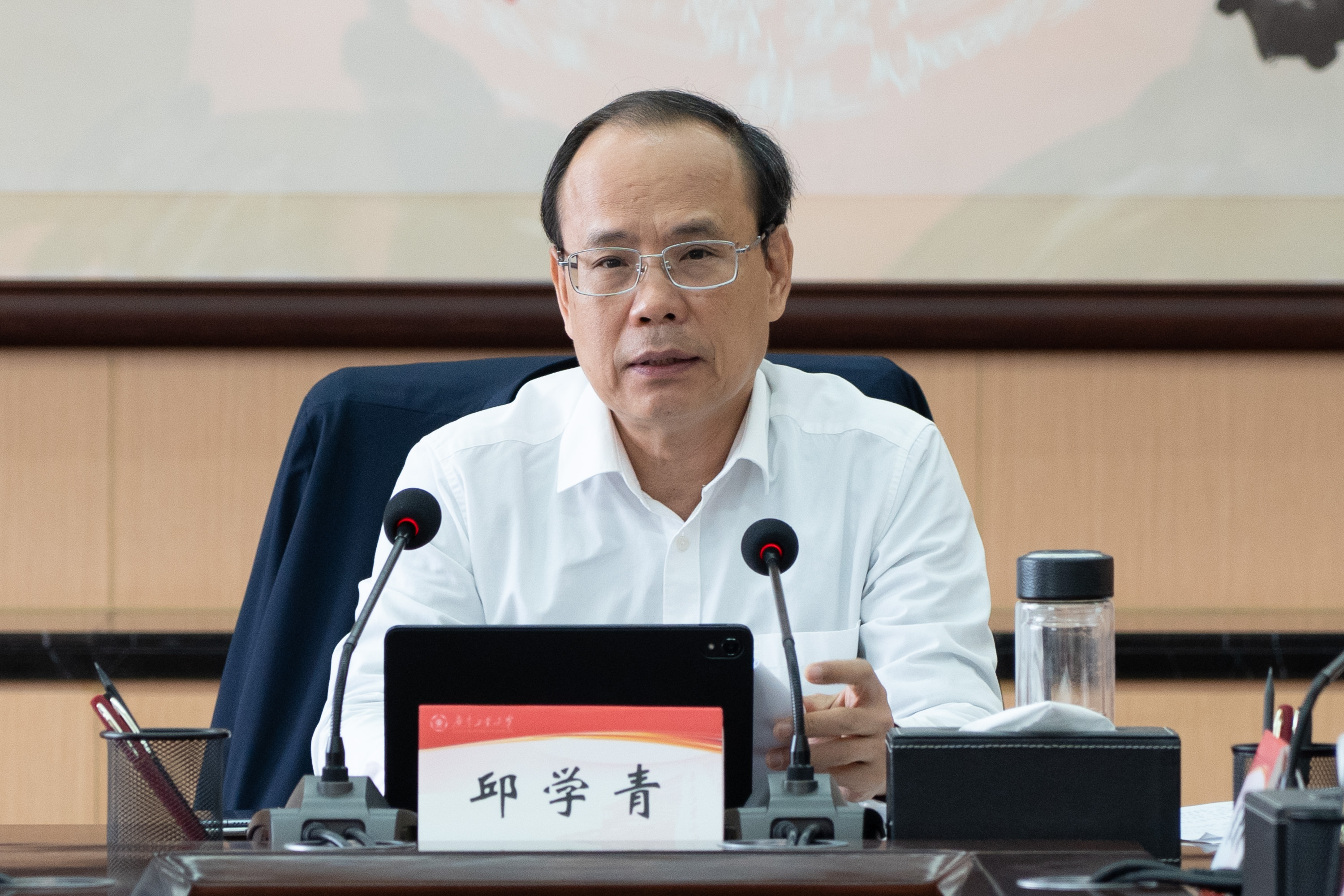 邱学青指出,习近平总书记关于加强党的作风建设的重要论述立意高远、内涵丰富、思想深刻,为深入推进党的作风建设、密切党同人民群众血肉联系提供了根本遵循。党的作风关系人心向背,决定党和国家事业成败。要切实提高政治站位,深刻认识和系统把握党的作风建设的重要意义。要聚焦党的工作重心和学校发展大局,以中央八项规定为切入口,一体推进作风建设。要聚焦立德树人根本任务,紧紧围绕高水平创新型大学建设和“冲一流”目标,持续改进党风政风、校风学风。要以自我革命精神推进作风建设,继续保持惩治腐败的高压态势,把作风建设融入日常、抓在经常,推动中央八项规定精神化风成俗。