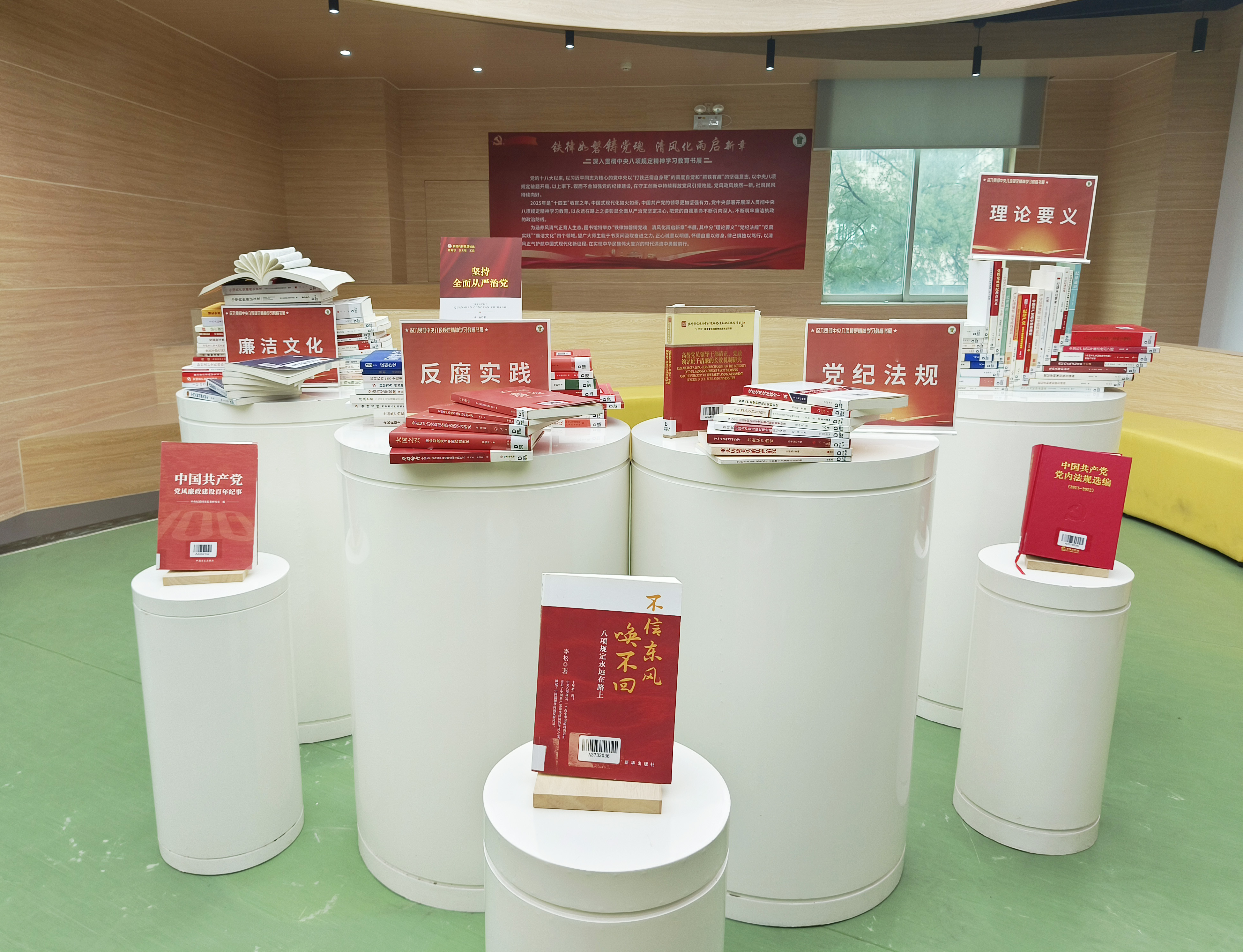 近日,学校图书馆依托丰富馆藏资源,在大学城、龙洞、东风路三校区馆同步推出“铁律如磐铸党魂 清风化雨启新章”深入贯彻中央八项规定精神学习教育书展,以书籍资料特别是领导人经典著述为载体,为全校师生搭建系统化、沉浸式的学习平台,推动中央八项规定精神入脑入心、见行见效。