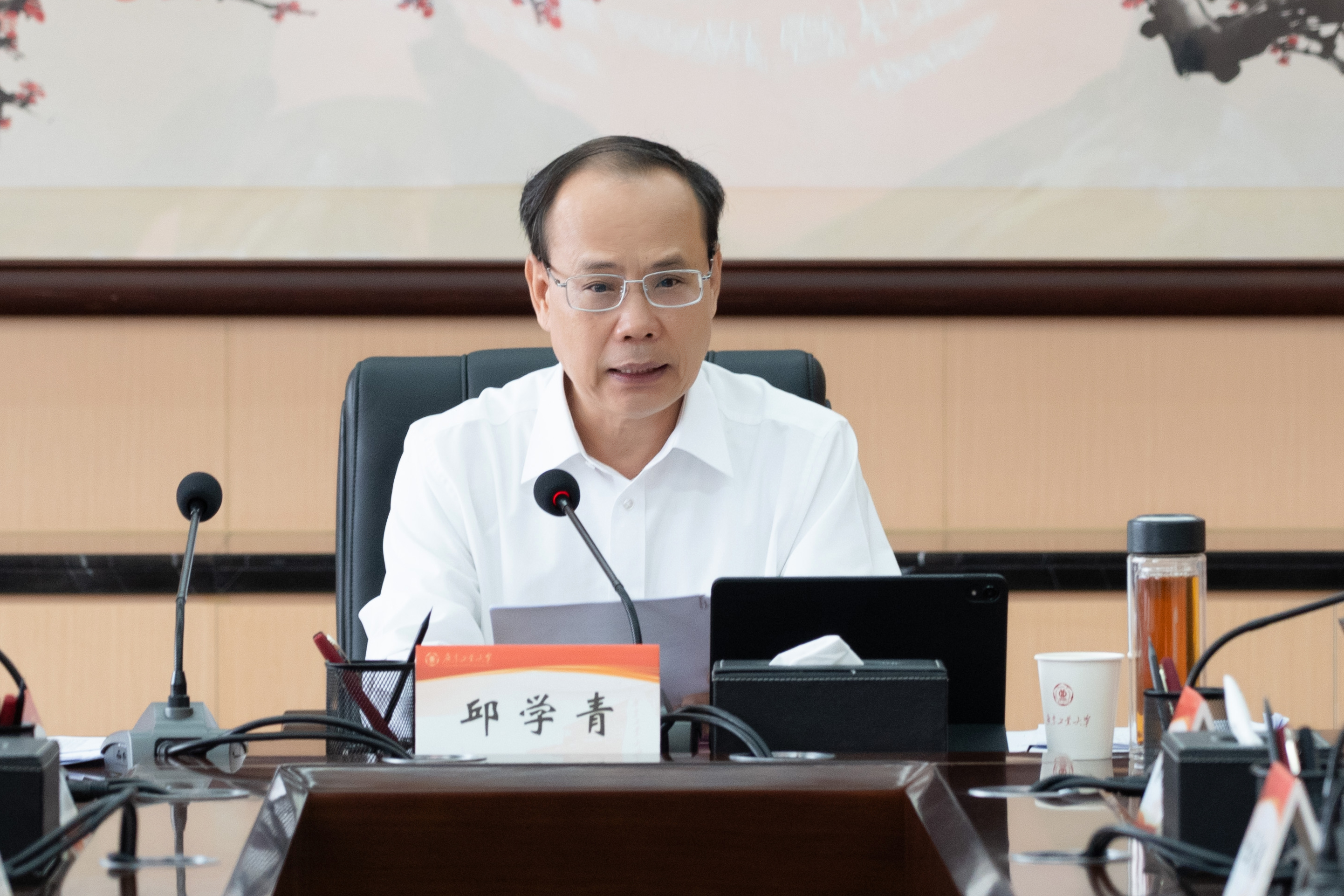 5月20日上午,华体会·官方版网站登录入口举办深入贯彻中央八项规定精神学习教育(以下简称学习教育)读书班暨党委理论学习中心组集体学习研讨会。校党委副书记、校长邱学青主持并讲话,全体校领导、校党委理论学习中心组成员参加学习。